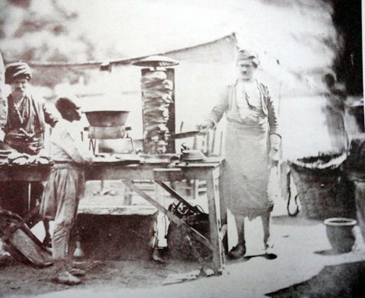 Première photo connue du doner kebab, James Robertson, 1855, Empire ottoman